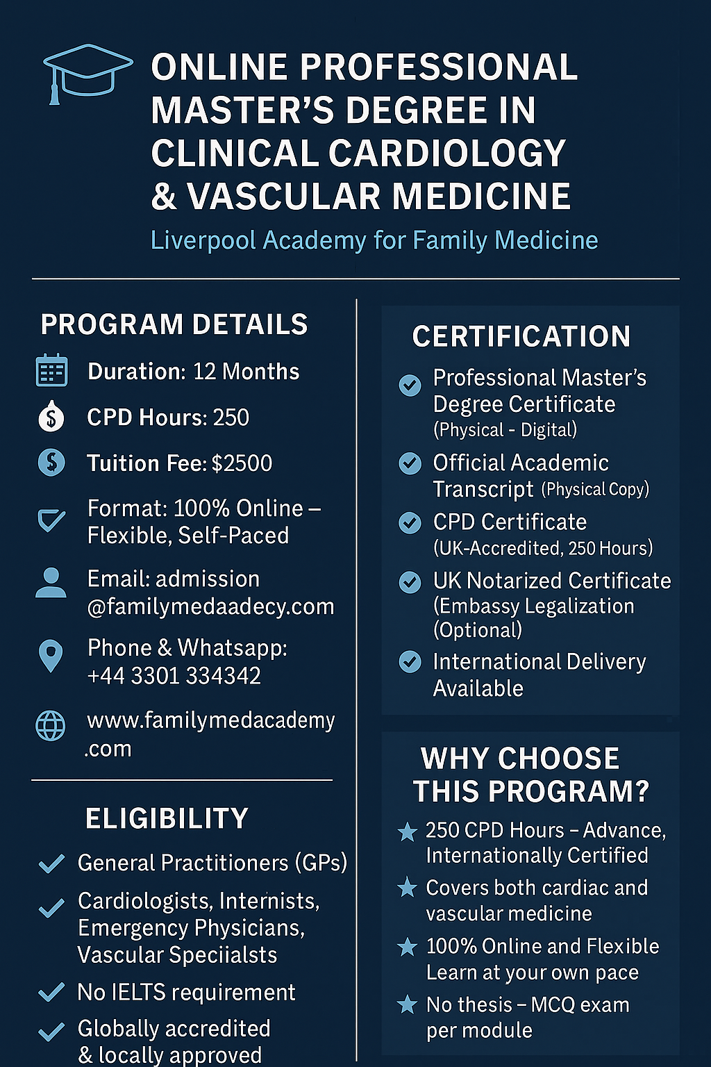 Registration is currently open for Online Professional Master’s Degree in Clinical Cardiology &