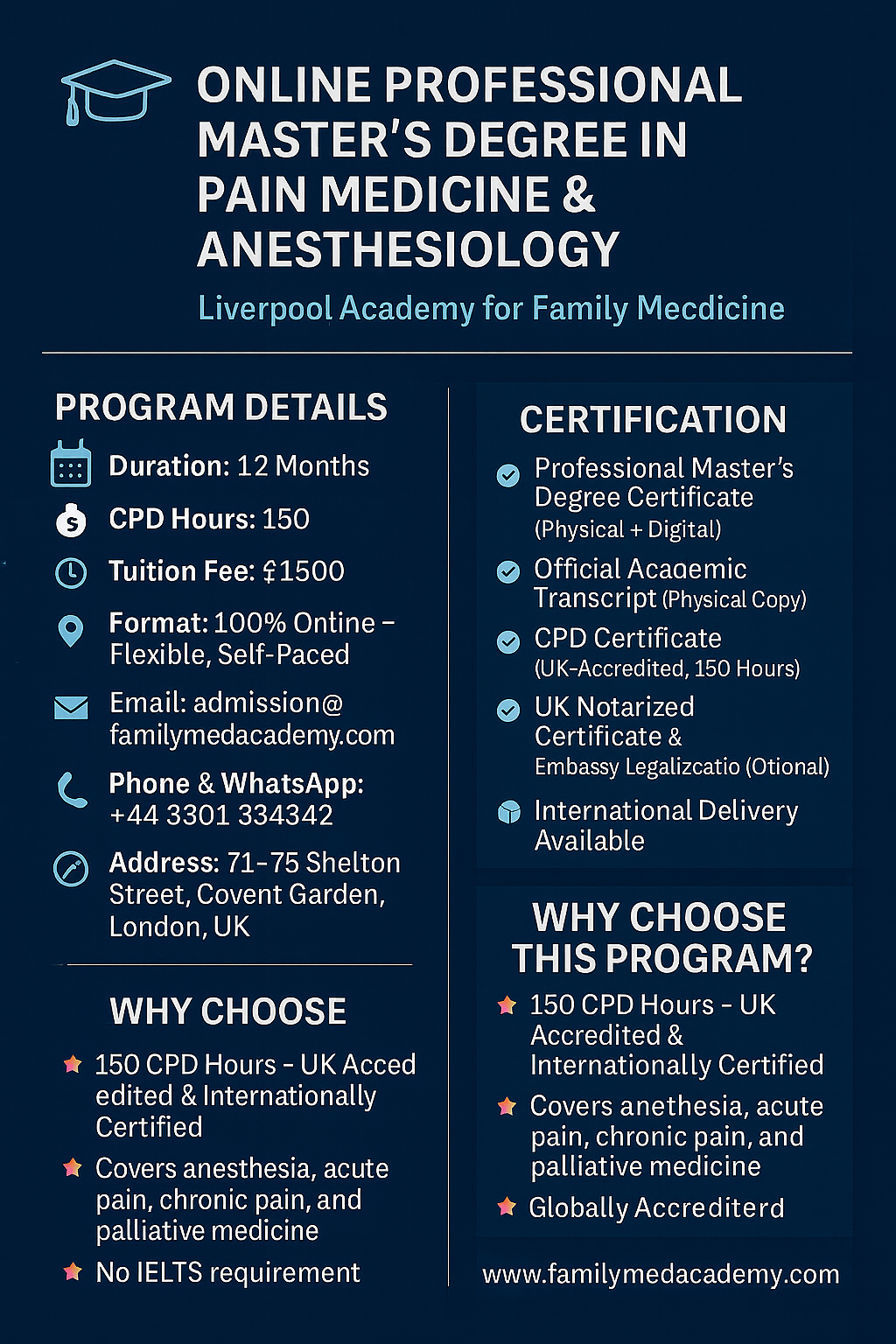 Registration is currently open for Online Professional Master’s Degree in Pain Medicine and Anesthesiology