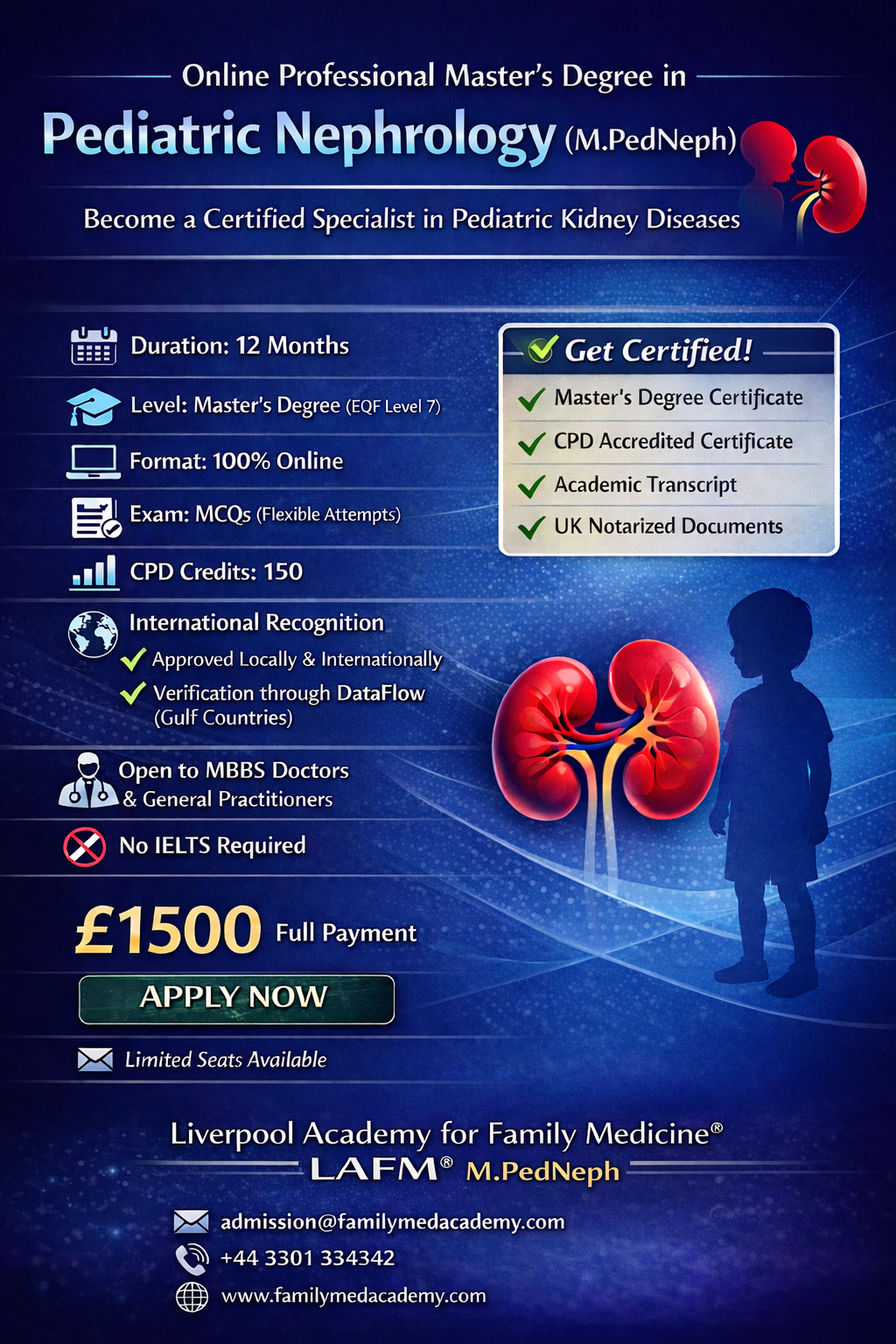 This Professional Master’s Degree offered by the Liverpool Academy for Family Medicine follows the academic structure, learning outcomes, and credit standards used across the European Higher Education Area (EHEA).